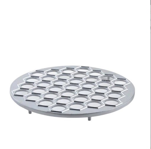 - Połóż rozwałkowany okrągły placek na urządzeniu.