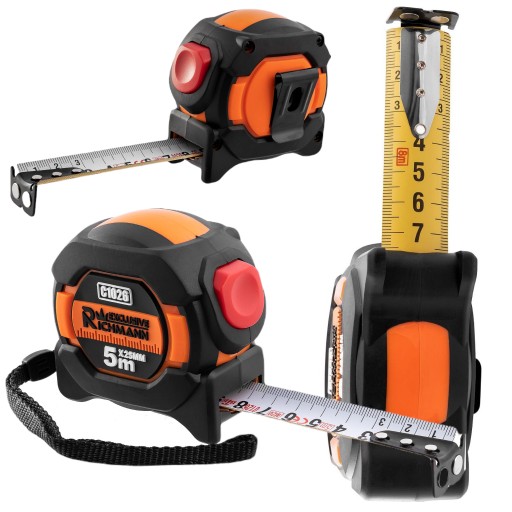 - wysokiej jakości profesjonalna miara zwijana o wymiarach 5 m x 25 mm