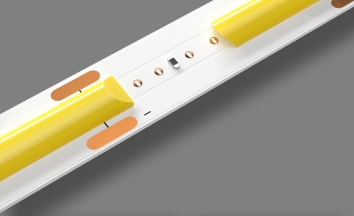 Taśmy LED w technologii COB zapewniają bardziej jednorodne, liniowe światło bez widocznych punktów świetlnych. Taśmy w technologii COB mogą być montowane w płytkich profilach, bez ryzyka powstania widocznych punktów świetlnych.