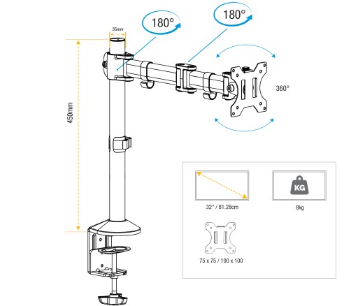 ☑️ Utrzymuje monitory o wadze maks. do 8 kg
