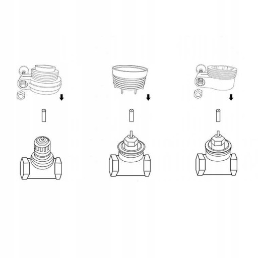 W zestawie znajduje się komplet przejściówek / adapterów (RA, RAVL, RAV) umożliwiający bezproblemowy montaż termostatu niezależnie od typu grzejnika