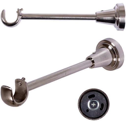 Wspornik karnisza o średnicy rurki fi 19 wykonany jest z metalu, pokrytego powłoką galwaniczną oraz dodatkową warstwą utwardzonego lakieru, która zapewnia doskonałą ochronę powierzchni przed ścieraniem.