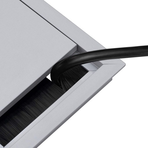 Wymiary frezowania: 93 x 93 mm, wysokość 16 mm, materiał: lite aluminium, nierdzewne, z czarną uszczelką szczotkową. Powierzchnia: wejście kabla aluminiowego, anodowane, średnica całkowita: 100 x 100 mm - kwadratowy wylot kabla Wysokiej jakości wylot kablowy na stół biurowy lub blat, meble i szafki, ściany mieszkalne i wiele innych.