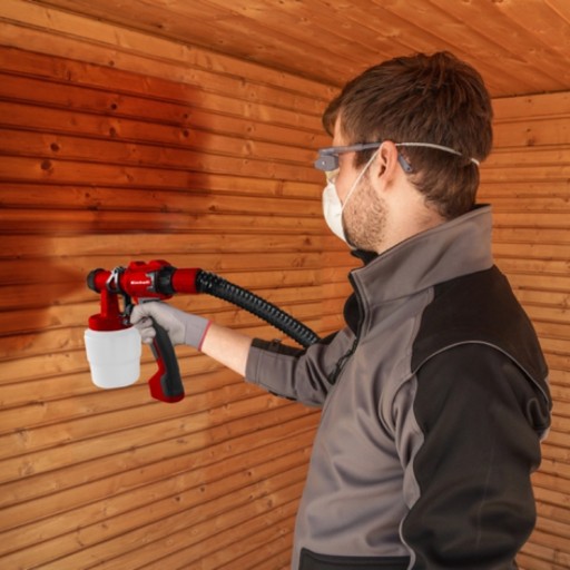 - Pistolet natryskowy charakteryzuje się niewielkimi gabarytami oraz mocą pozwalającą mu bez problemu malować przy użyciu lakierów, lazur i lakierobejcy.