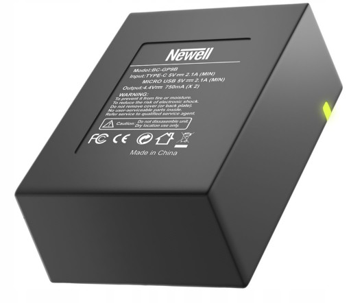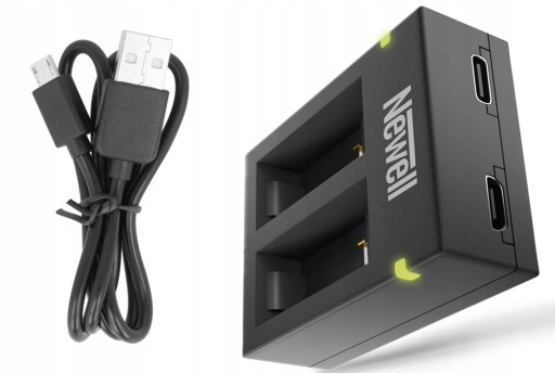 Ładowarka kompatybilna jest z systemowymi akumulatorami GoPro, akumulatorami marki Newell oraz innymi zamiennikami.