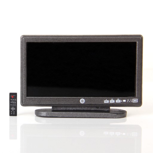 Dollhouse Miniature Wide Screen Television Flat-Panel LCD TV w/ Remote -Gray