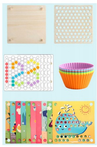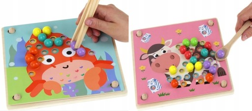 Zabawka ta została zaprojektowana tak aby jak najlepiej Twoje dziecko się rozwijało. Dzięki wymiennym szablonom można albo układać kolorowe drewnie koraliki - perły, albo zagrać w coś innego.