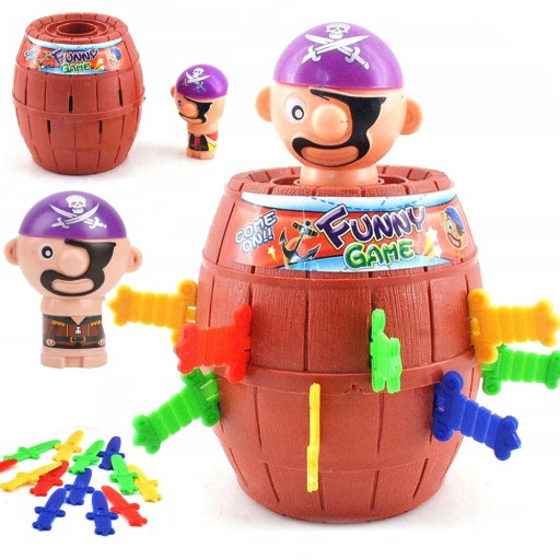 Gra polega na wkładaniu szabli do wybranych przez siebie otworów w beczce. Jeżeli zrobisz to niezręcznie - pirat wyskakuje z beczki, a Ty przegrywasz.