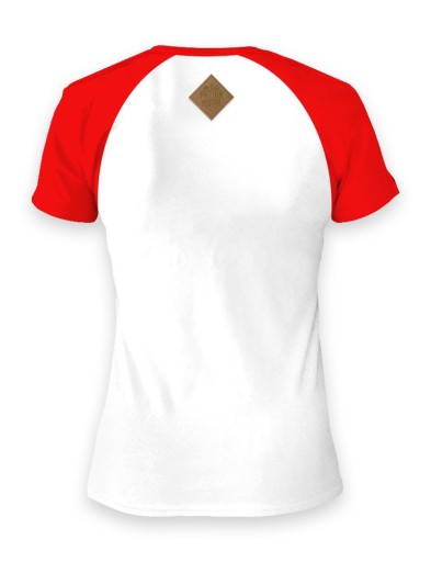 Koszulka wykonana jest w kroju raglan, z kontrastującym, czerwonym materiałem użytym do rękawków i kołnierzyka, który dodatkowo akcentuje symbolicznie wykonane na piersiach: białego orzełka w koronie na czerwonej tarczy, a także nazwę naszego państwa, pisaną niewielkimi literkami, charakterystycznie dobranym rodzajem czcionki. Całość nastawiona jest oczywiście w pierwszej kolejności na nasze barwy narodowe.