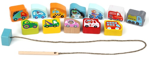Zestaw składa się z 12 części i sznurka z drewnianą końcówką i ogranicznikiem. Nawlekanie to jedna z najlepszych zabaw służąca rozwojowi umiejętności motorycznych. CUBIKA oferuje nam bardzo estetyczną wersję tego nawlekania w postaci zestawu samochodzików. Elementy wykonane są z wysokiej jakości jesionu i drewna bukowego, a po malowaniu używa się specjalnej farby na bazie wody, która jest bezpieczna dla dzieci i bezzapachowa.