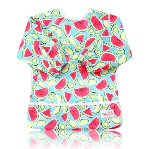 Kolorowy, wodoodporny fartuszek sprawdzi się idealnie przy pierwszych próbach samodzielnego jedzenia.