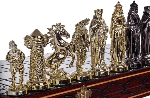 Każda szachownica jest zapakowana w tekturowe pudełko.