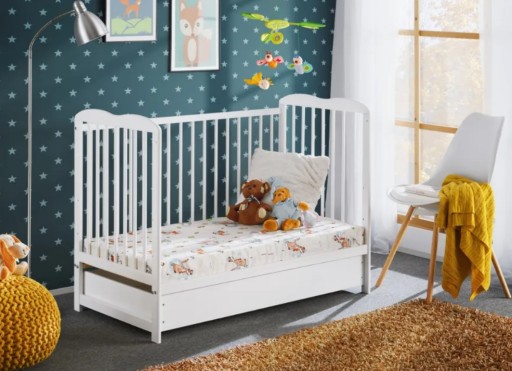 Łóżeczko wykonane z drewna sosnowego (z lasów certyfikowanych przez FSC).