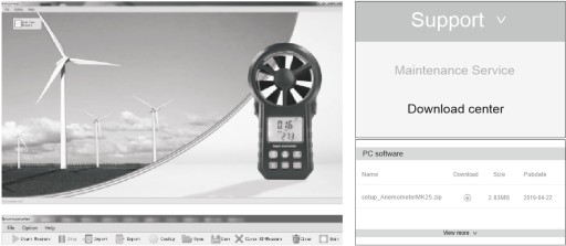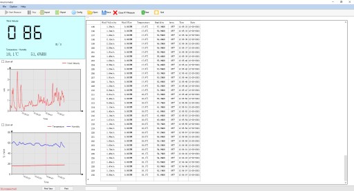 Wiatromierz posiada wbudowany, czytelny i przejrzysty wyświetlacz LCD z podświetleniem oraz port USB dzięki czemu możemy odczytywać wyniki na komputerze. W programie generowane są wykresy, a zebrane dane można następnie eksportować do arkusza kalkulacyjnego