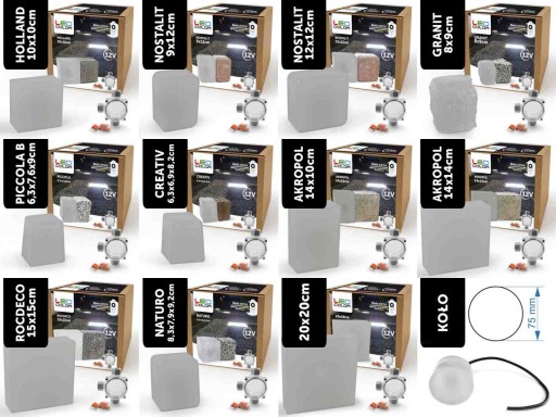Nasza oferta obejmuje również niezbędne akcesoria instalacyjne takie jak: dedykowane przewody instalacyjne (4 żyłowe do kostek RGB i 2 żyłowe do kostek białych) do układania w ziemi, puszki hermetyczne do wykonywania rozgałęzień i połączeń w ziemi.