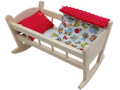 Urocza kołyska drewniana dla lalek, wykonana z drewna świerkowego.