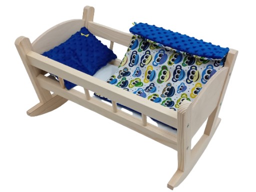 Urocza kołyska drewniana dla lalek, wykonana z drewna świerkowego.