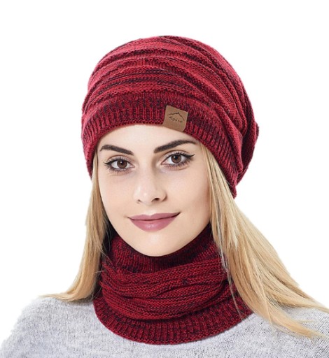 DAMSKI KOMPLET ZIMOWY CIEPŁA CZAPKA Z KOMINEM