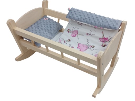 Urocza kołyska drewniana dla lalek, wykonana z drewna świerkowego.