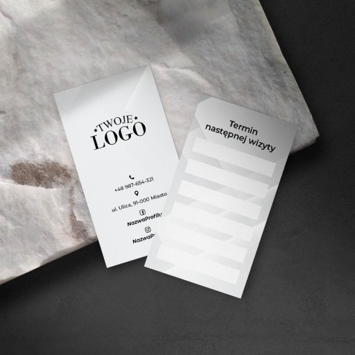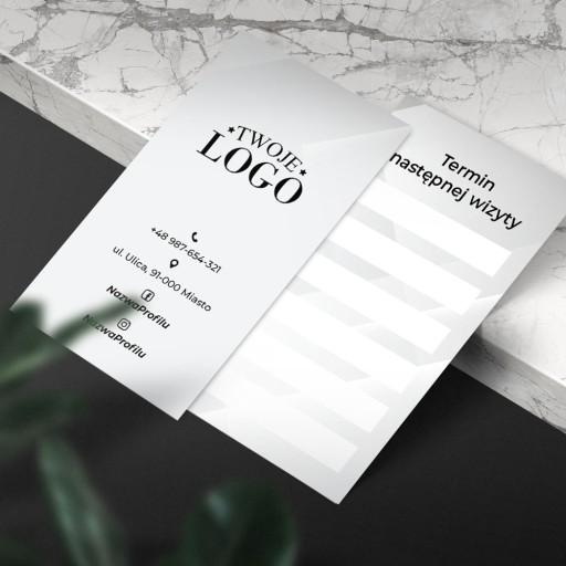 Karty firmowe z miejscem na wpisanie daty najbliższej wizyty to idealny sposób na zanotowanie klientowi umówionego terminu.