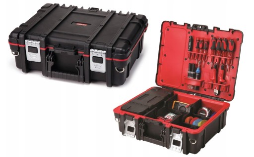 Profesjonalna skrzynka narzędziowa Keter Technican Box. Praktyczna i pojemna skrzynka narzędziowa o dużej pojemności. Jej wnętrze ułatwia przechowywanie narzędzi w różnych rozmiarach. Umieszczony w skrzynce organizer umożliwia łatwiejszy dostęp do najczęściej używanych narzędzi. Dodatkowo, produkt został wyposażony w wyjmowany organizer z przegródkami.
