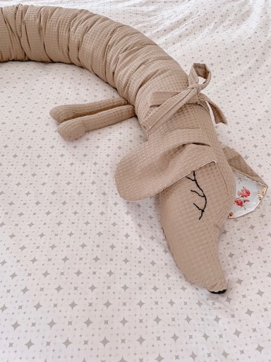 - Wielofunkcyjny ochraniacz do łóżeczka zabezpiecza malucha przed uderzeniami o szczebelki czy też oddziela starsze dziecko od zimnej ściany