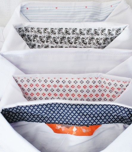 Podszycie kołnierzyka od strony wewnętrznej może być białe lub we wzory