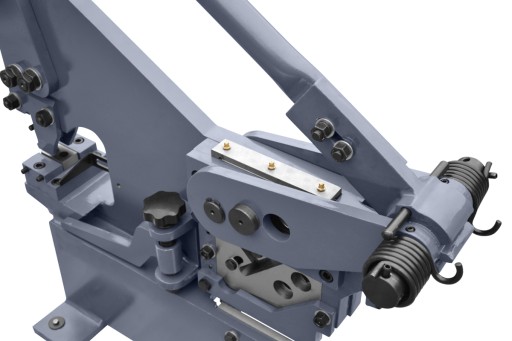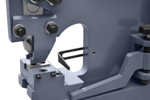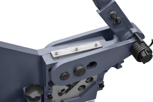 Urządzenie posiada również zderzak wykrawanej blachy, pozwala na ustawienie dokładnej głębokości wykrawania.