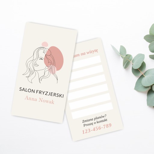 Piękne wizytówki z miejscem na wpisanie daty i godziny następnej wizyty.