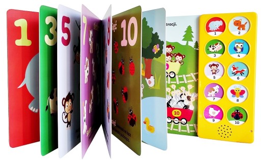 - Wyróżnikiem publikacji jest 10 DŹWIĘKÓW odpowiadających cyferkom, wydawanych po naciśnięciu PRZYCISKÓW DŹWIĘKOWYCH.