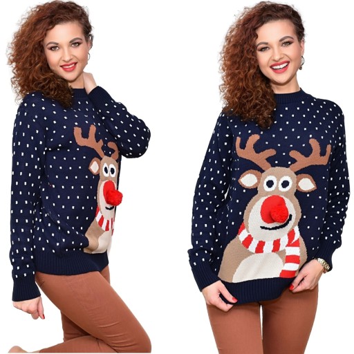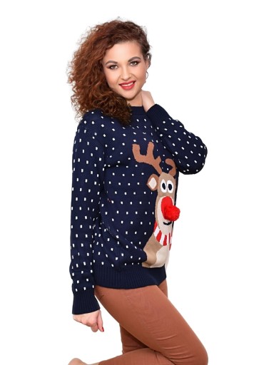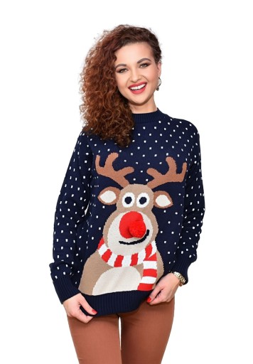GRANATOWY SWETER ŚWIĄTECZNY Z RENIFEREM NOS 3D