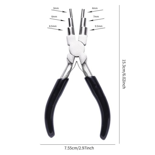 6 ROZMIARÓW PĘTLI: To narzędzie wielofunkcyjne może zastąpić 6 oddzielnych szczypiec, tworząc pętle 3 mm 4 mm 6 mm 7 mm 8,5 mm 9,5 mm