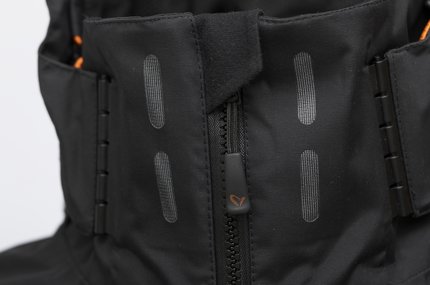 - Kieszeń na piersi zapinana na bryzgoszczelny zamek z odblaskową taśmą