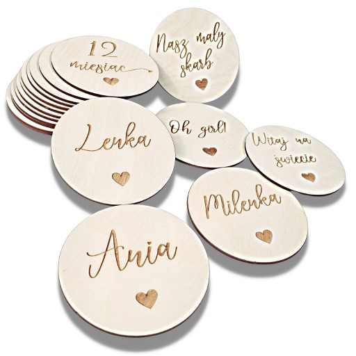 DREWNIANE TABLICZKI KARTY DO ZDJĘĆ DZIECKA ZESTAW