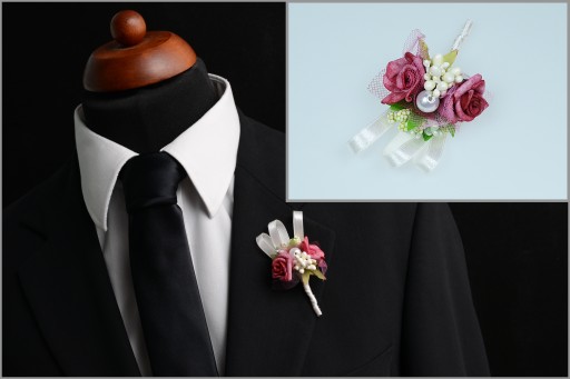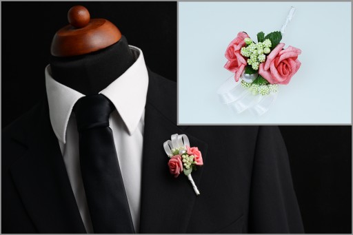 Wykonane z naturalnie wyglądających różyczek oraz efektownych dodatków florystycznych wykończonych wstążką gwarantują oryginalny wygląd na weselu czy studniówce.