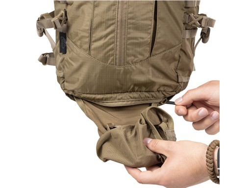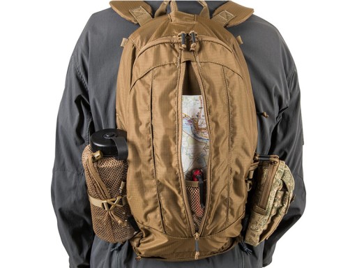 Boczne panele plecaka są wyposażone w dwie płaskie kieszenie z zamkami, skrywające dodatkowe siatkowe uchwyty na butelki i stabilizowane bocznymi taśmami kompresyjnymi. Dodatkowo, plecak jest wyposażony w dwa rzędy wąskich taśm MOLLE Lite na bokach. Pozwalają na przymocowanie dodatkowych kieszeni, jednocześnie ograniczając wagę.