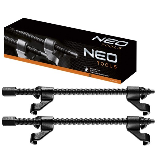 Ściągacze do sprężyn NEO (nr ref. 11-807) odkuwane, o długości 300 mm. W zestawie znajdują się 2 ściągacze do obsługi wszystkich typów sprężyn, np. w kolumnach McPhersona. Ściągacze współpracują z grzechotką 1/2", posiadają 4 punkty mocowania oraz solidny gwint umożliwiający bezpieczną pracę pod dużym obciążeniem. Gwarantem wysokiej jakości i niezawodności produktu jest certyfikat TÜV Rheinland. Marka NEO spełnia oczekiwania profesjonalistów.