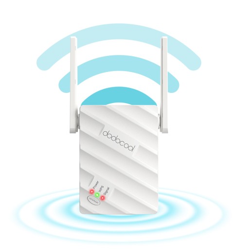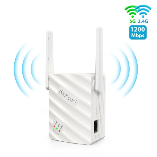 dodocool wifi boosters z portem Ethernet i dwuzakresowymi antenami zewnętrznymi (2,4 GHz + 5 GHz), aby zapewnić łączną prędkość transmisji do 1200 Mb/s dla domu. Zapewnia lepsze wrażenia z przesyłania strumieniowego i gier online.