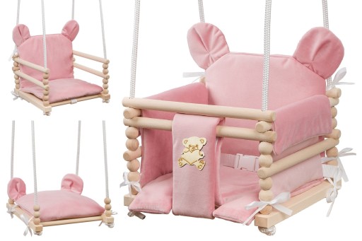 ⭐Huśtawka Drewniana 3w1 VELVET MIŚ