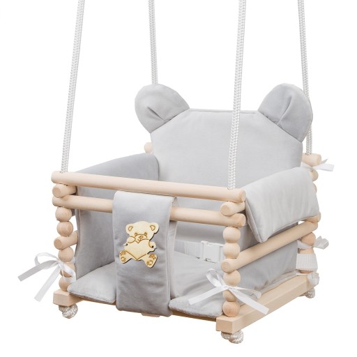 ⭐Huśtawka Drewniana 3w1 VELVET MIŚ