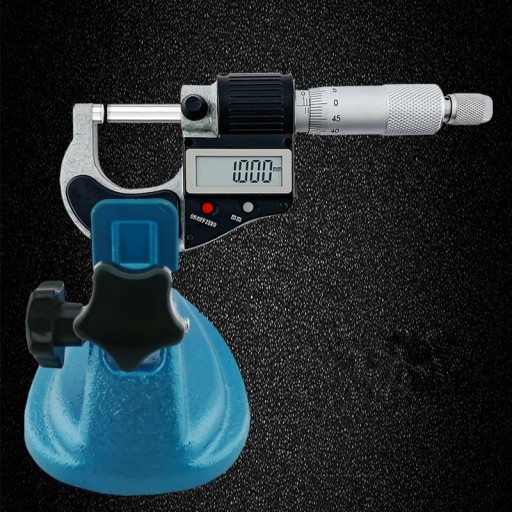 - Statyw do mocowania mikrometrów zewnętrznych umożliwia wygodny pomiar detalu.