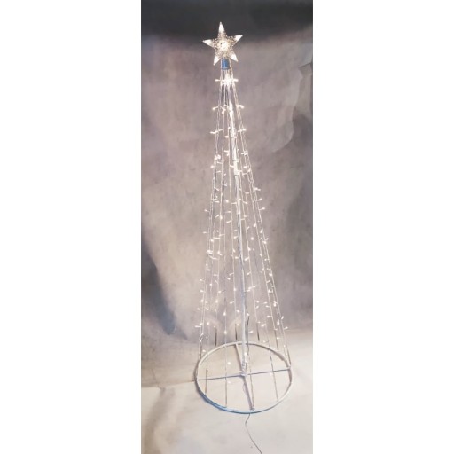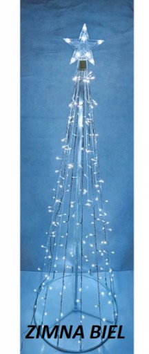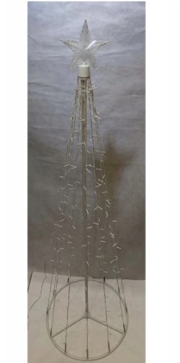 Choinka świetlna została zatwierdzona do użytku na zewnątrz pomieszczeń. Ozdobi Twój ogród w najzimniejszym i najciemniejszym okresie roku. Jest wyposażona w metalowy stelaż i stoi stabilnie na podłożu dzięki podstawie składającej się z metalowej obręczy o średnicy 59 cm.