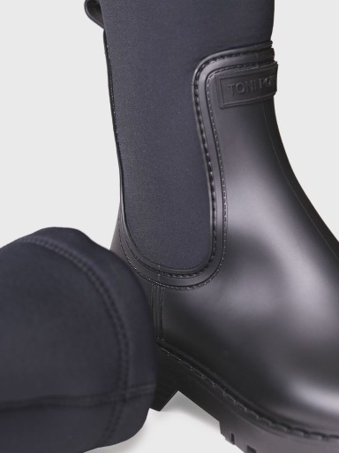 - Kalosze od hiszpańskiej marki Toni Pons wykonane z wysokogatunkowego tworzywa w kolorze czarnym.