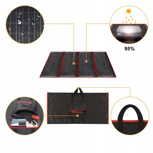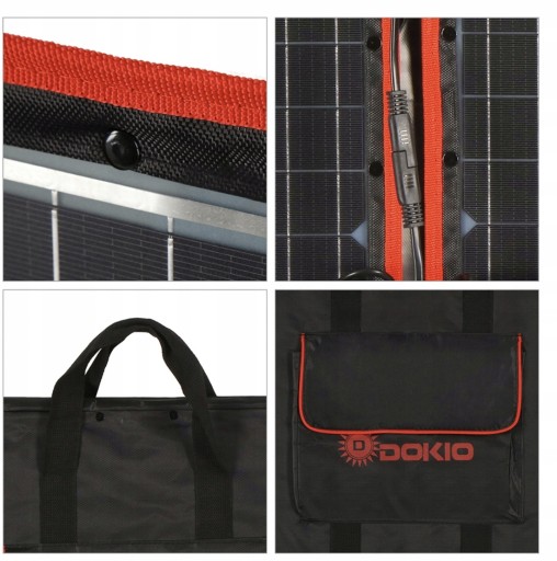 Dokio 300 W 18 V – elastyczny, składany panel słoneczny. Ten przenośny panel słoneczny nada się na różne okazje – na kemping, łódź, auto, rodzinną podróż czy po prostu do domu. Jest to praktyczny zestaw, z którego obsługą poradzisz sobie bez najmniejszych kłopotów. Rozłóż, podłącz do wybranego urządzenia mobilnego i tyle wystarczy, aby cieszyć się dodatkową i darmową energią! Należy zaznaczyć, że panel słoneczny zajmuje bardzo mało miejsca. Zmieścisz go do każdej torby czy plecaka. A na deser warto wspomnieć o jego solidnej konstrukcji, która przekłada się na długą żywotność i niezaprzeczalną wytrzymałość zestawu.