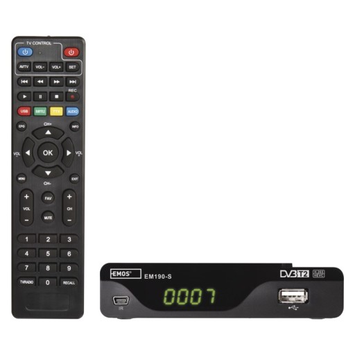 Dzięki jego niewielkim wymiarom ten set top box EMOS EM190-S można bardzo wygodnie umieścić z tyłu telewizora, co spowoduje, że stanie się niewidoczny. Trzeba tylko wyprowadzić zewnętrzny czujnik IR (kabelek o długości 1 m), zaprogramować uniwersalny pilot, a w menu wyłączyć przedni panel, aby nie zakłócał telewizora. Potem korzystamy już tylko z jednego pilota i nawet nie zauważamy, że mamy włączony jakiś dekoder. Odbiornik oczywiście zawiera również zintegrowany czujnik sygnałów IR i jeżeli odbiornik jest zainstalowany klasycznie pod telewizorem, nie jest konieczne odłączanie zewnętrznego czujnika IR.