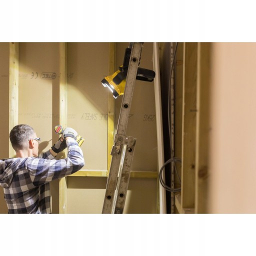 Lampa akumulatorowa posiada wytrzymałą, regulowaną i lekką konstrukcję. Produkt został wyposażony w 1900 lumenów jasności, aby zmaksymalizować światło w obszarze roboczym oraz w dwa ustawienia jasności. Czas pracy lampy wynosi 10 godzin (z akumulatorem 4,0 Ah). Bateria i ładowarka sprzedawane osobno.