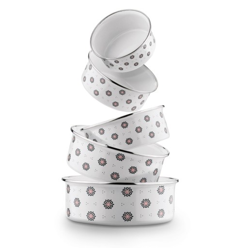 Набор из 5 металлических эмалированных мисок с крышкой Tadar Folklore 10-18 см