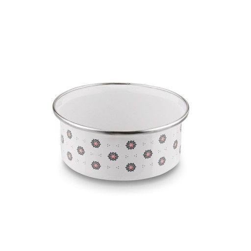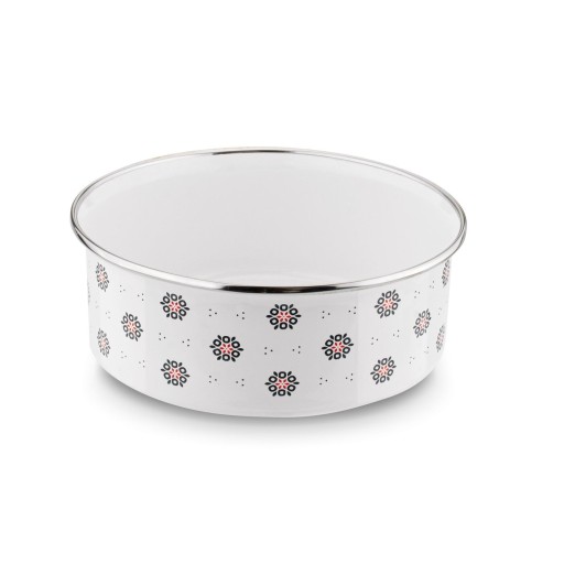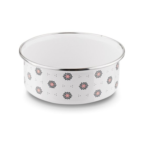 Zestaw 5 misek emaliowanych Tadar Folklor 10-18 cm ma dedykowane pokrywki. Naczynia są stalowe i trwałe. Przechowasz w nich jedzenie, także w lodówce. Wykorzystasz je również, by zabrać posiłek w podróż. Co więcej, ochronisz składniki lub resztki z obiadu przed wysychaniem, owadami i zanieczyszczeniem. Zamawiając je, zyskasz zestaw 5 misek emaliowanych (0,25 / 0,4 / 0,7 / 0,9 / 1,2 litra), który mogą bezpiecznie używać alergicy, osoby starsze, a nawet dzieci. Przechowasz je niewielkim kosztem miejsce oraz umyjesz bez wysiłku. Średnica misek pozwala na umieszczenie ich jedna w drugiej. Retro motyw ozdobny nawiązuje do folkloru tradycyjnego i wygląda bardzo stylowo.