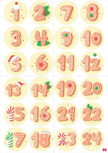 РОЖДЕСТВЕНСКИЕ НАКЛЕЙКИ АДВЕНТ-КАЛЕНДАРЬ круглые А4 24 шт. 4,5 см N08
