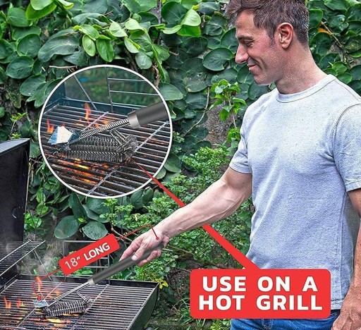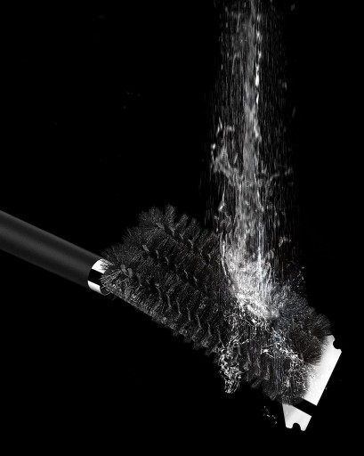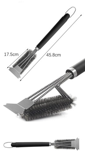 Szczotka do grilla ma trzy szczotki w jednej, dzięki czemu czyszczenie jest wygodniejsze i łatwe.